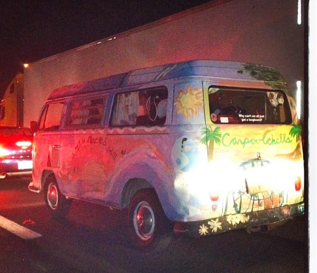 Tabitha, was leaving for Coachella last night which has totally been stressing me out. She was going with 4 other girls and staying at a condo, but one of the girls flights from college was delayed so they couldn’t drive out to desert until 10:30 pm. Well I said my good-byes and went to bed at 10:00pm but she came in at 10:30 pm to give me one last kiss good-bye, which was so sweet, but I re-woke up. At 12:20pm I bolted awake and my heart was racing and I felt panicked. Something seemed wrong. I texted her, assuming her friend was in charge of reading and responding to all text messages while Tabitha drove and she sent me this picture from the freeway.